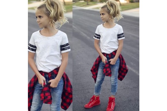 Tanto para os meninos, quanto para as meninas, essa é uma combinação que funciona. Muito caracterizada por composições mais soltas e descontraídas, tem como principais itens do guarda-roupa, as peças jeans, leggings, regatas, camisas e tênis.